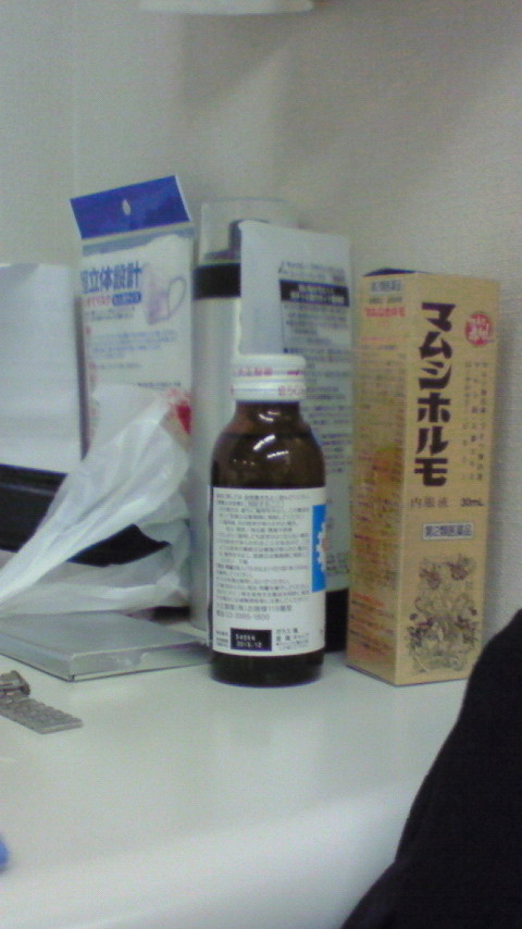 永島です。ゆーりさんの鏡前にはなぜかマムシドリンクがあります。